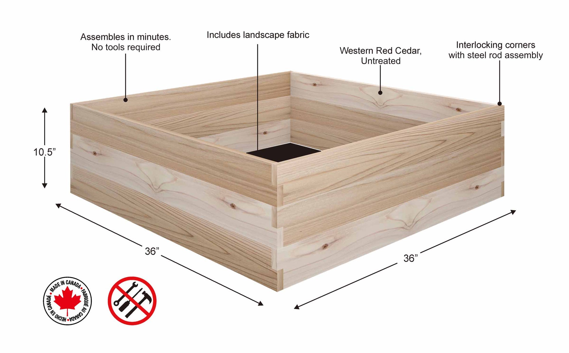 - Fabriqué au Canada à partir de cèdre rouge de l'Ouest – non traité et provenant de sources durables
