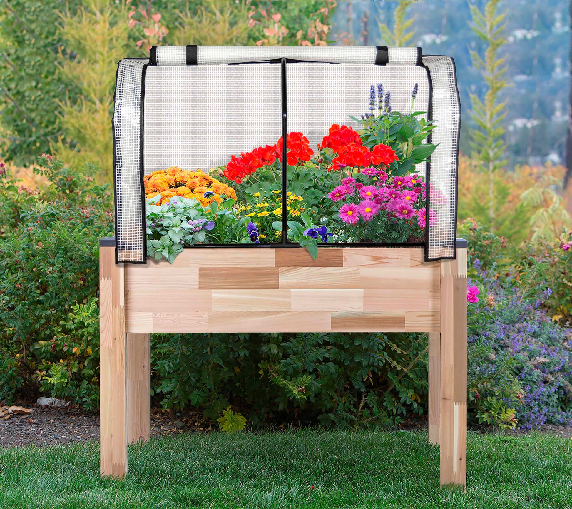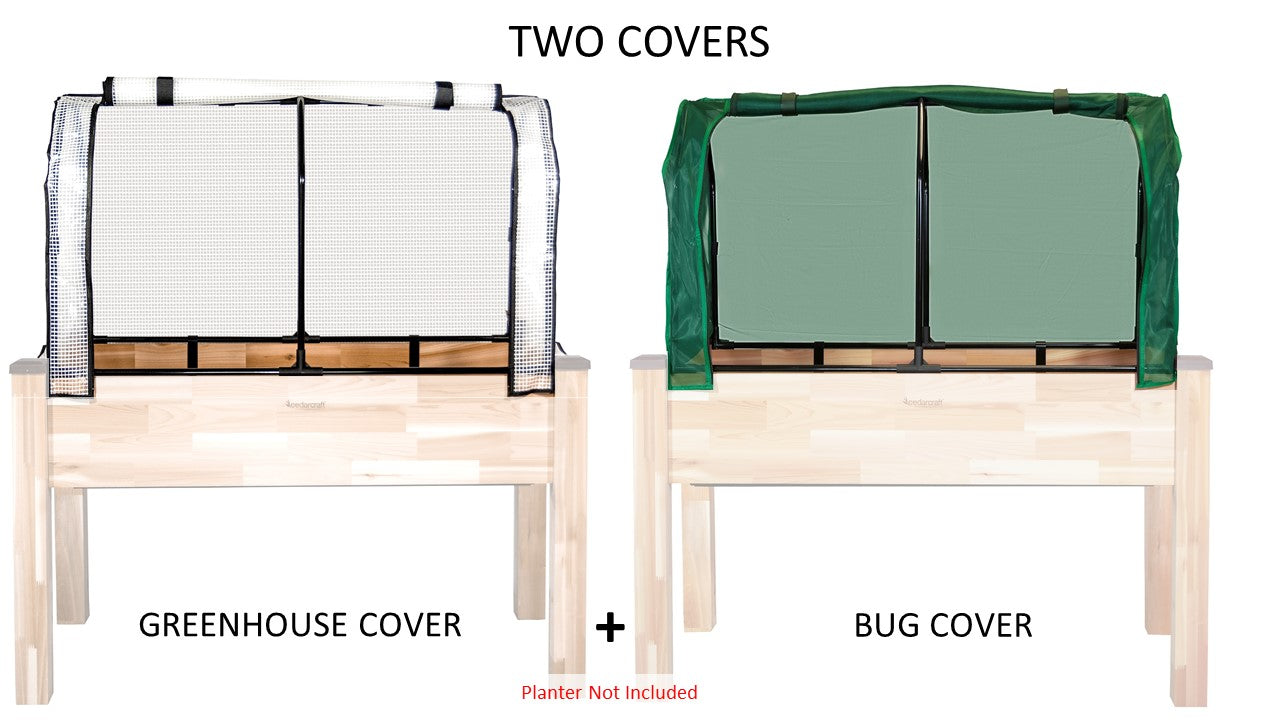 La serre et la couverture anti-insectes CedarCraft offrent le microclimat parfait pour vos plantes. Comprend 1 cadre avec 2 couvertures. La couverture de serre vous permet de commencer à planter plus tôt au printemps et de prolonger la saison de croissance plus tard jusqu'à l'automne pour augmenter votre récolte. La couverture anti-insectes protège les plantes des insectes, des parasites, des oiseaux et autres animaux.
