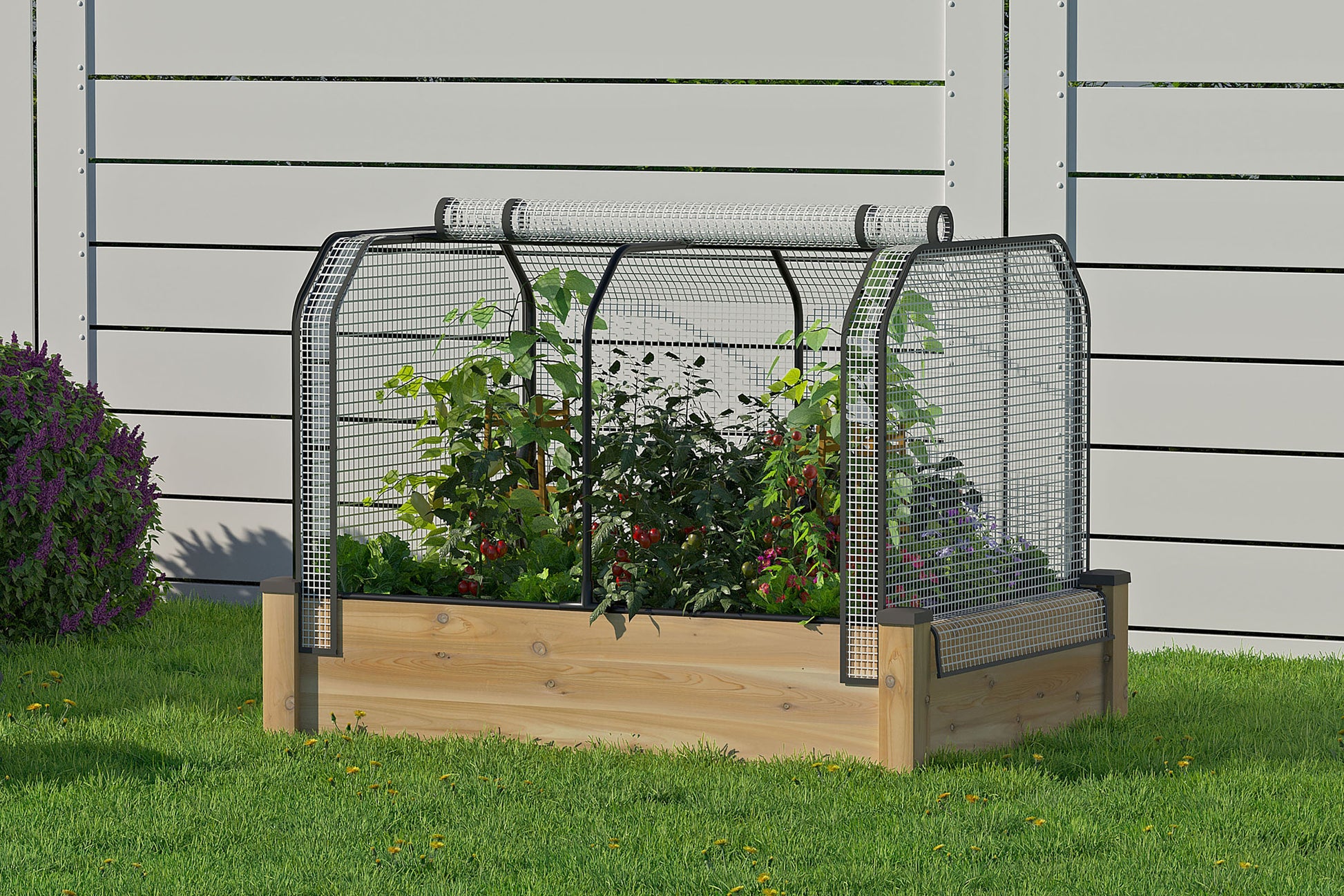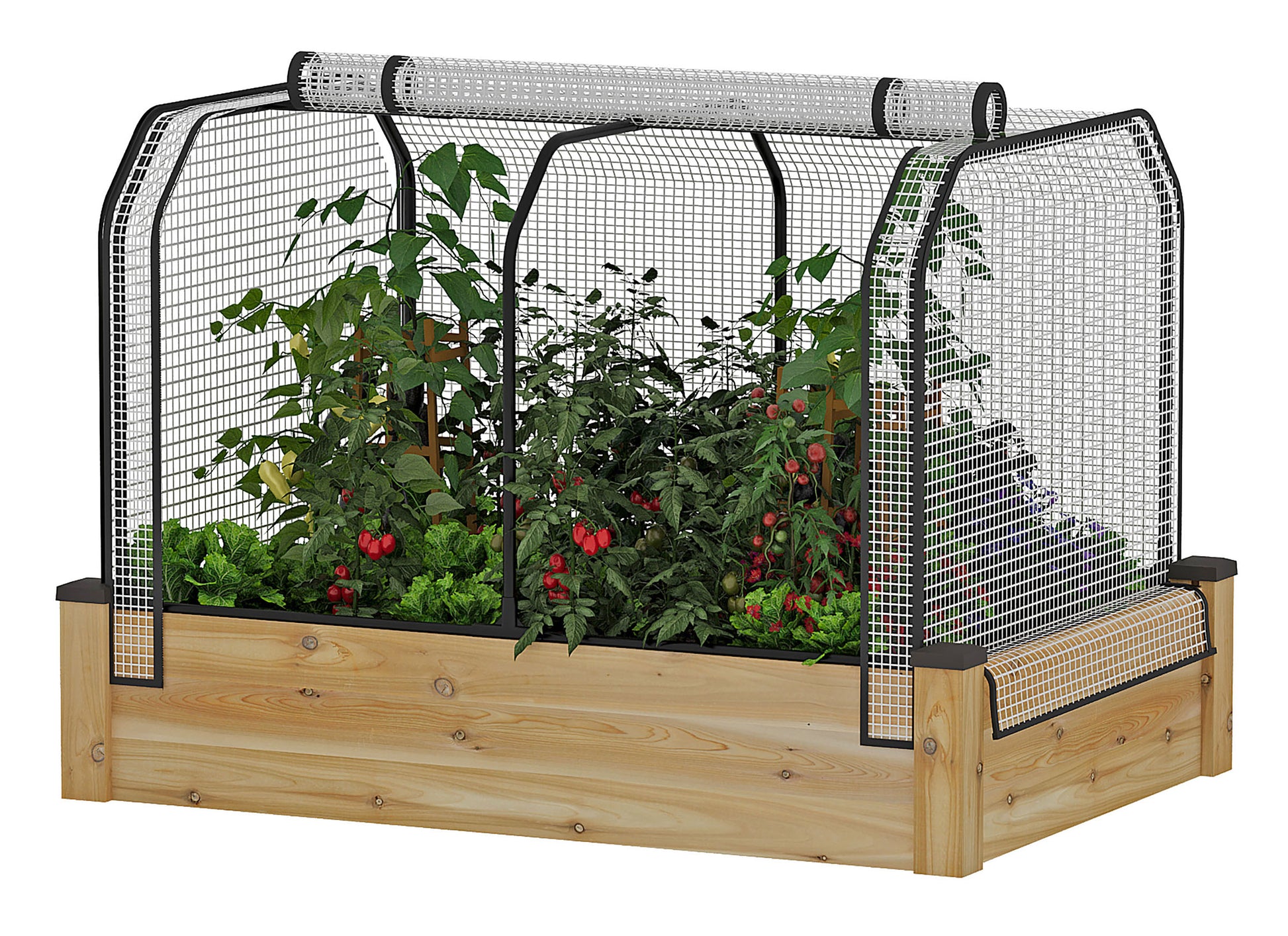 Provide the perfect microclimate for your plants. The greenhouse cover allows you to start planting earlier in spring and extend the growing season later into fall to increase your harvest. The bug cover protects plants from insects, pests, birds and other animals.