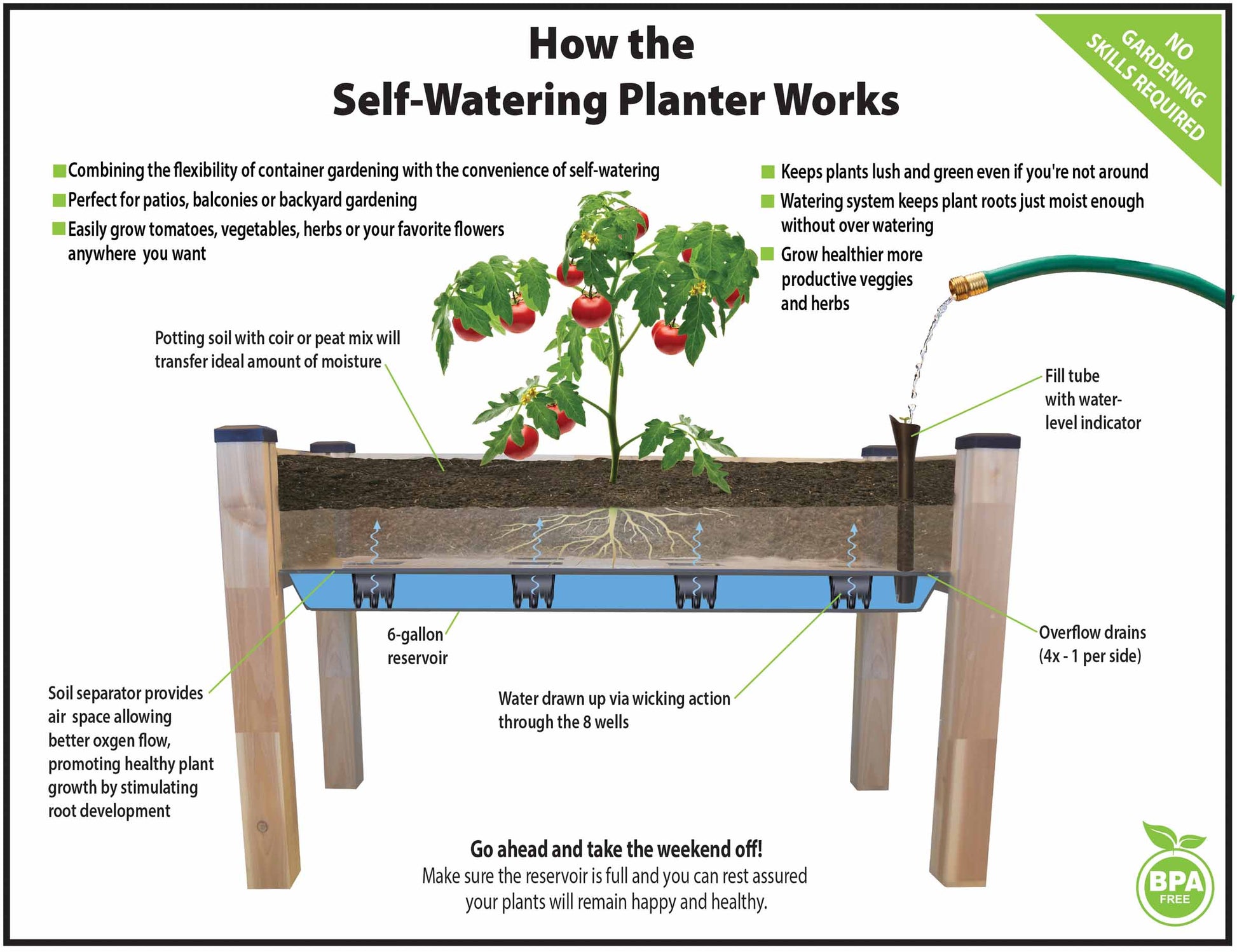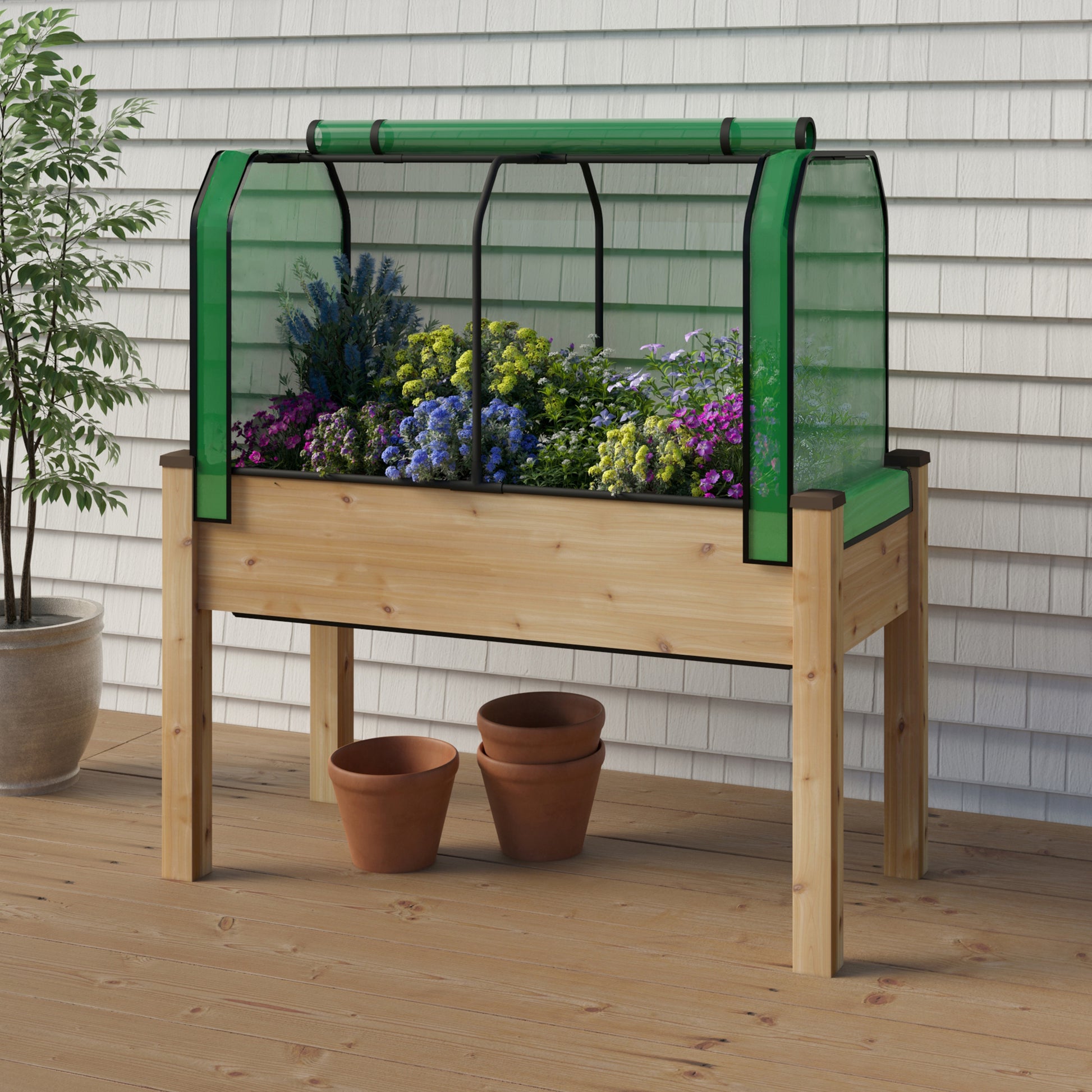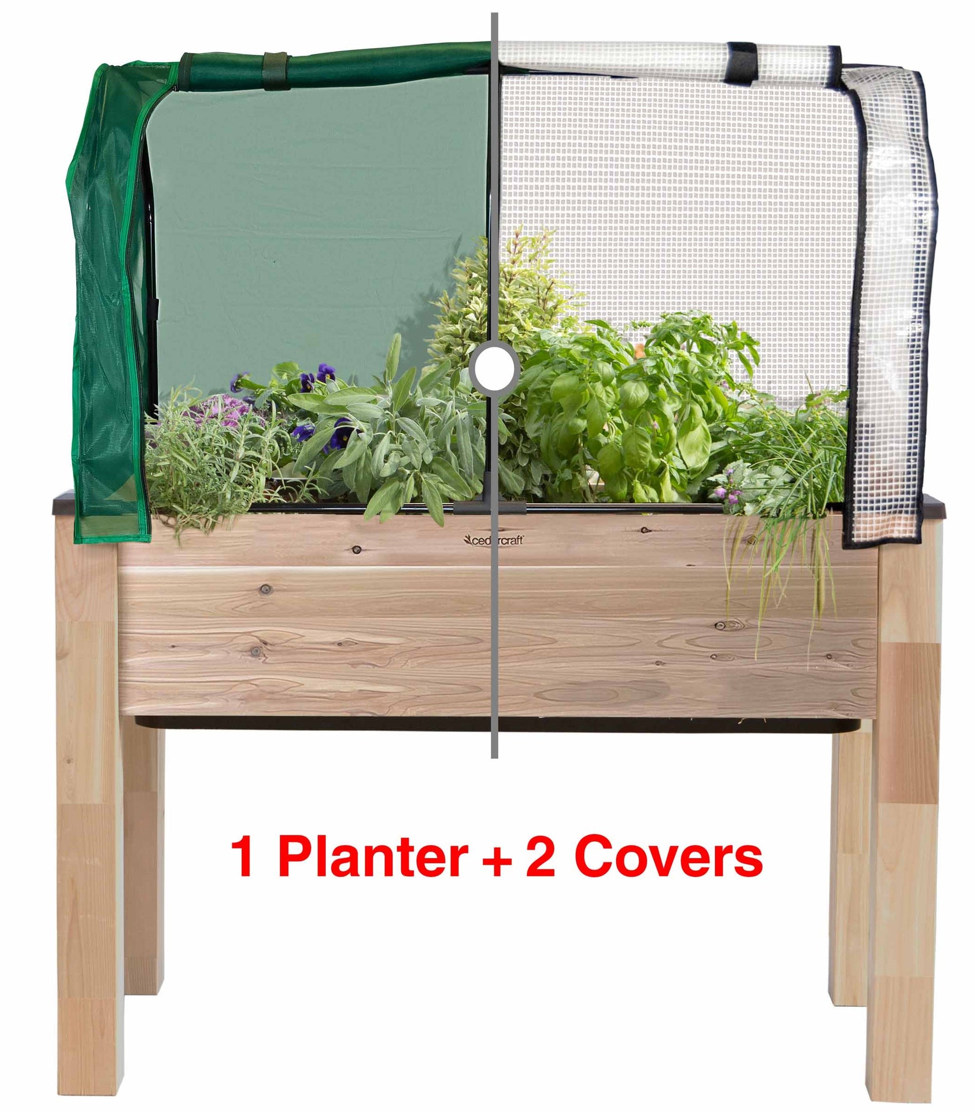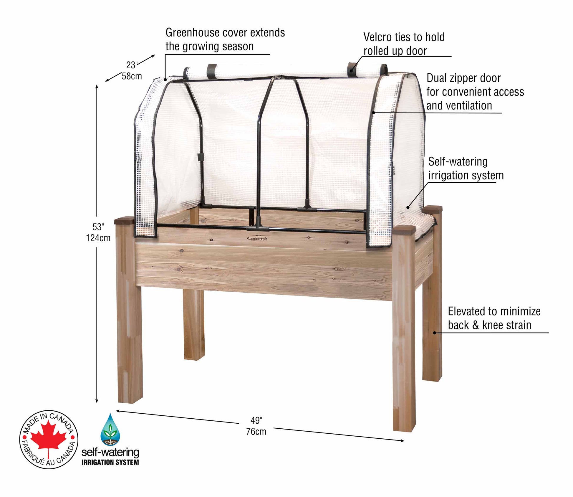Self-Watering Cedar Planter (22" x 48" x 30"H) + Greenhouse & Bug Cover